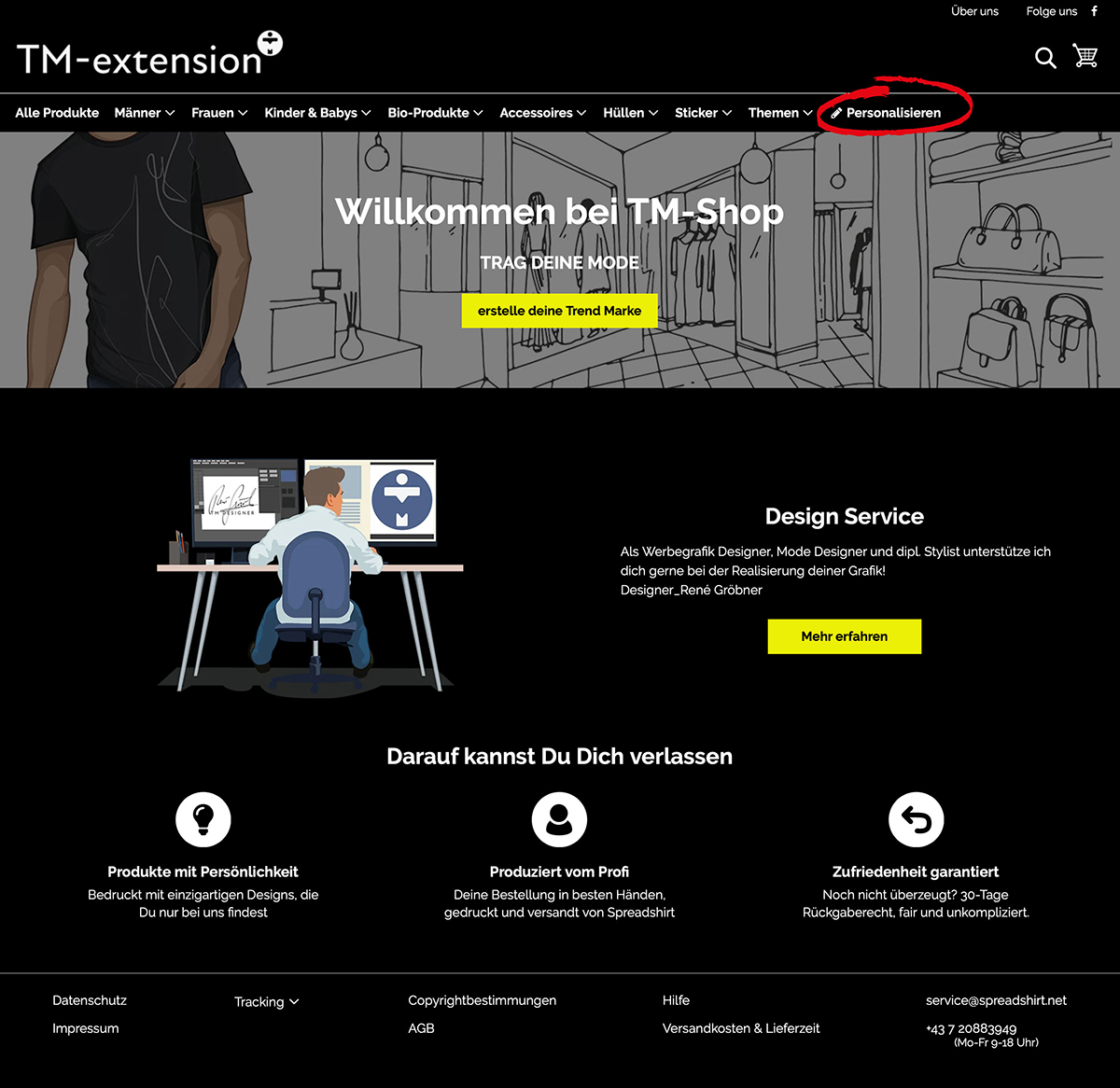 Personalisiere Produkte auch mit deinem Design oder Text.